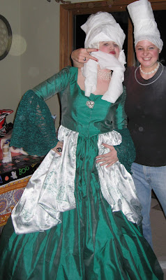 I've been super-swamped, just like I am every October with school events and Halloween. I'm so excited with the results of my hard work. Some of you got to see the Marie Antoinette costume I made last year, which included green lace (sleeves) and toile (white and green skirt) from the bargain section of the fabric store: